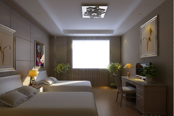 賓館裝修可以選用一些淺色調,比如淺綠色的窗簾或者床面裝飾,給人整體的一種安靜寧謐的感覺,窗簾不要太過于厚重暗沉。有些賓館裝修設計時時常會選擇一些色彩比較暗沉又很厚的窗簾。對賓館而言這樣做的好處有二:一是耐臟,二是可以有效遮光。但對顧客而言,會帶來視覺空間上的壓抑。這樣的窗簾雖然耐臟了,但清洗起來是極其費功夫的。我們也可以用一些藝術的方式來表達,但是最好選用自然界之中能夠給人清新自然感覺的物象進行這種感覺的營造,拉上窗簾,這里就是一個小小的世外桃源……賓館客房裝修的時候,空間布局要平淡穩重。客房在總體空間布局上,要平淡無奇,穩中求勝。